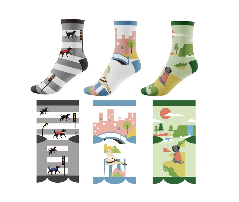 本次特別與臺灣設計、臺灣製造的在地品牌SOUNDS GOOD合作,三雙襪子設計的靈感來自導盲犬的每一天,有都市街景、日常休閒及郊外探索。希望導盲犬隨行襪能融入大家的生活,在每天穿上的瞬間,重新連結當初支持導盲犬的初心。讓善意不僅留在當下,而是被穿在腳上,走進生活,走得更遠。